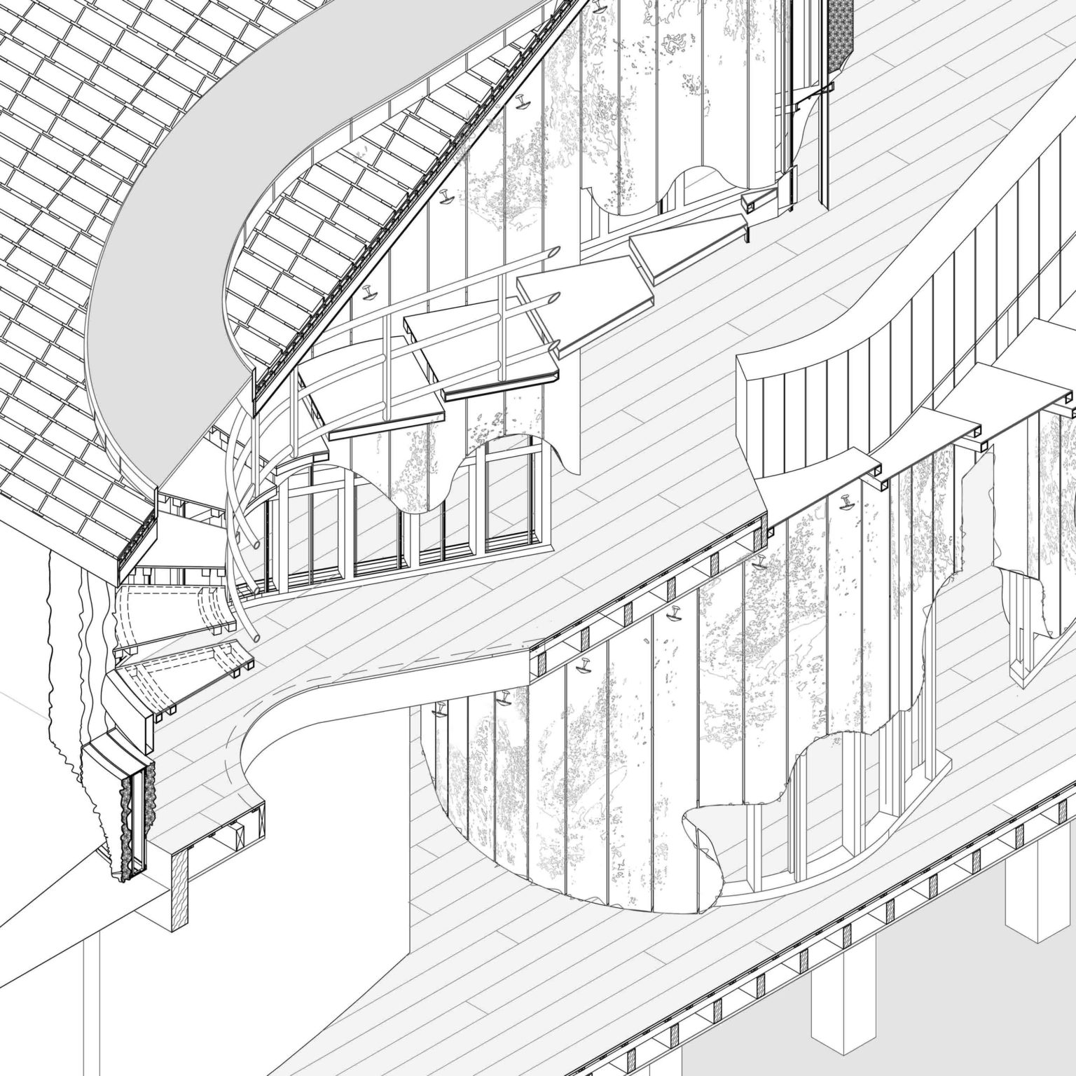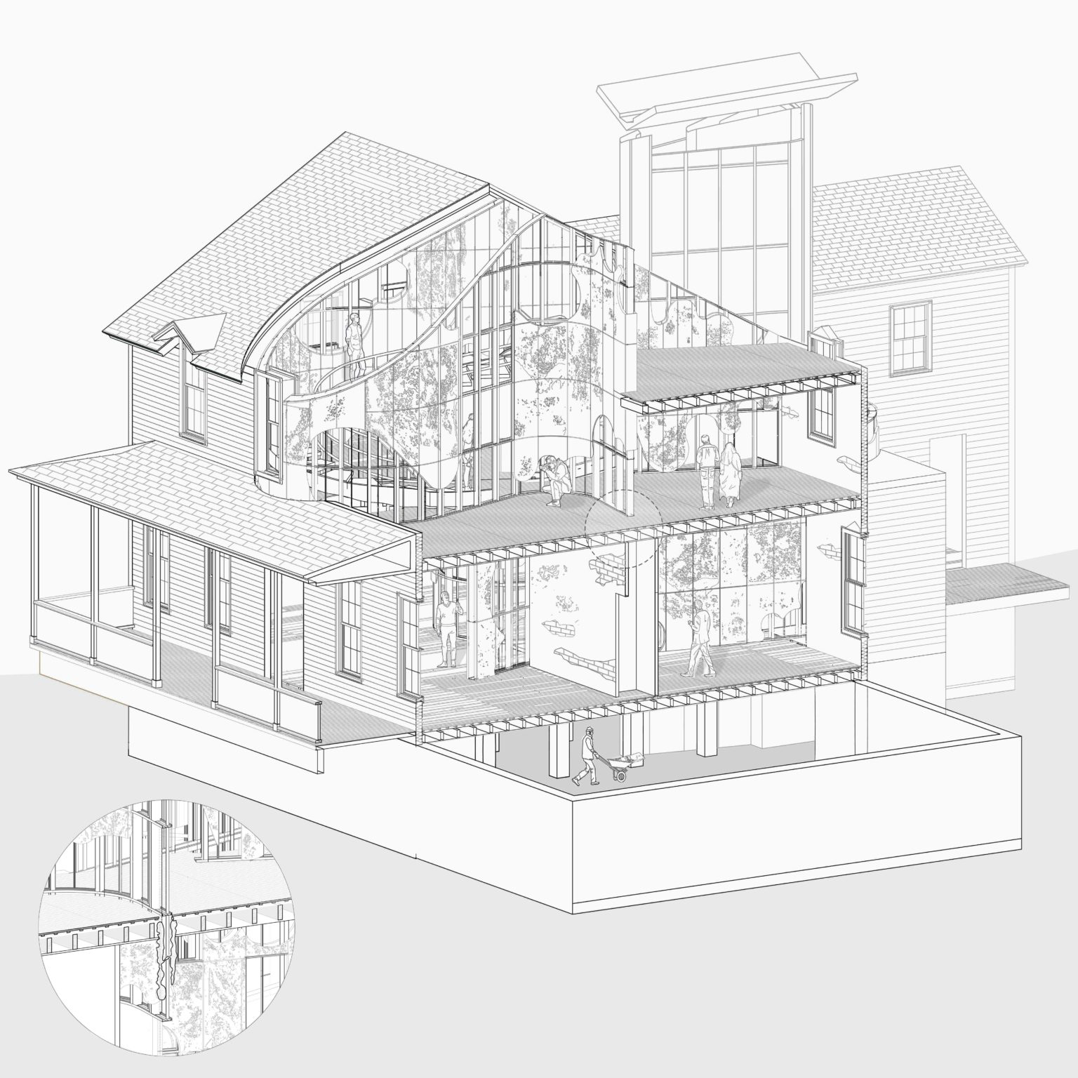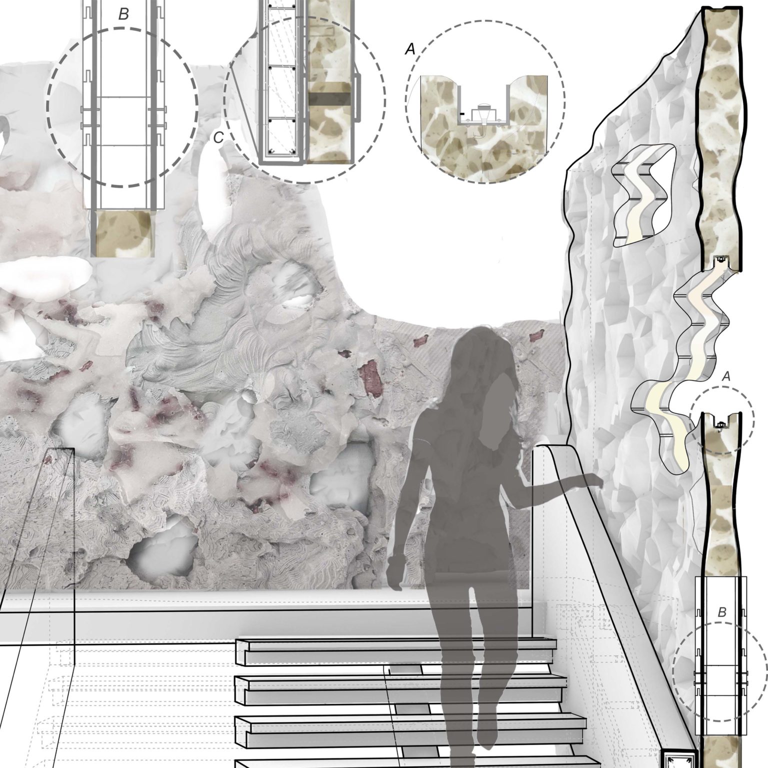 An ecologically prototypical insertion forming the structural core which constantly grows and encourages changing environments within the structure, and at the same time holds the potential to substitute constructions of the future.