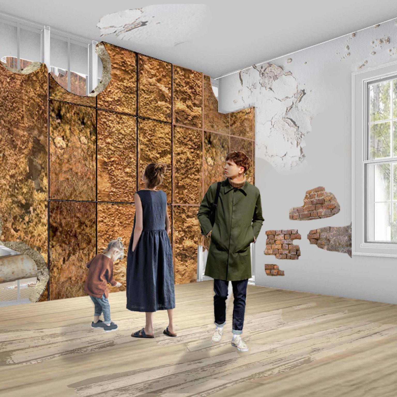 The ‘natural’ living wall is to be regenerated under ‘man-made’ microclimatic conditions. It also reveals itself externally intriguing and generating curiosity about “what's within?â€
