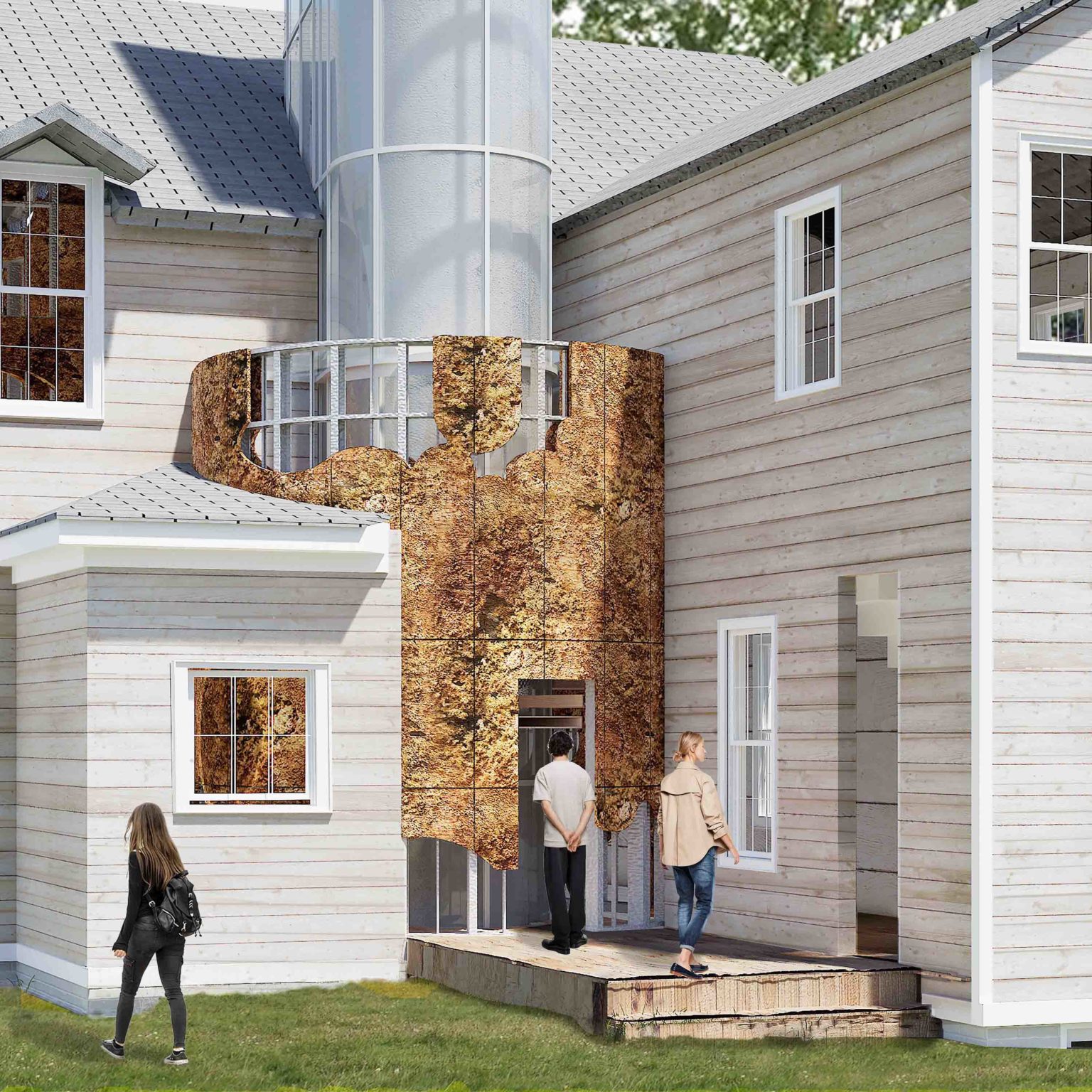 An unconventional approach moving away from the generic living wall, the mycelium core softens the boundary between the “natural†and the “constructedâ€, forming the structural core and exaggerating the spacial experience as one moves through the house.