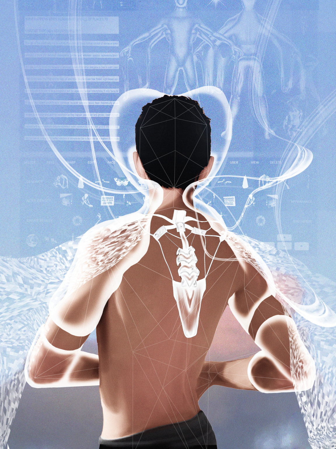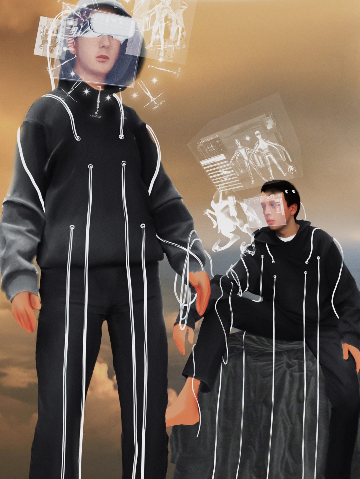 In our current day, AR is beginning to be introduced through Instagram filters and photo/video editing software. If this tech was pushed further and available in many areas of life, the possibilities can be much more extreme and all encompassing. This can lead to questions about how humans may exist in this era: how far could humanity grow with technology if our own survival/self demise was not an issue? How could humanity live when fully integrated with alternate reality? How seamlessly could technology merge with the psyche? How would individual expression and notions of identities change? When humans created language, the expressing of one’s identity was specified and expanded. Expanded vocabulary led to expanded sense of self and consciousness. In the same sense, an expansion of a physical identity in ways that could not occur naturally could peak in a transcendence of the physicality of existing.