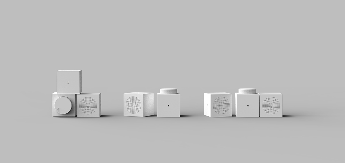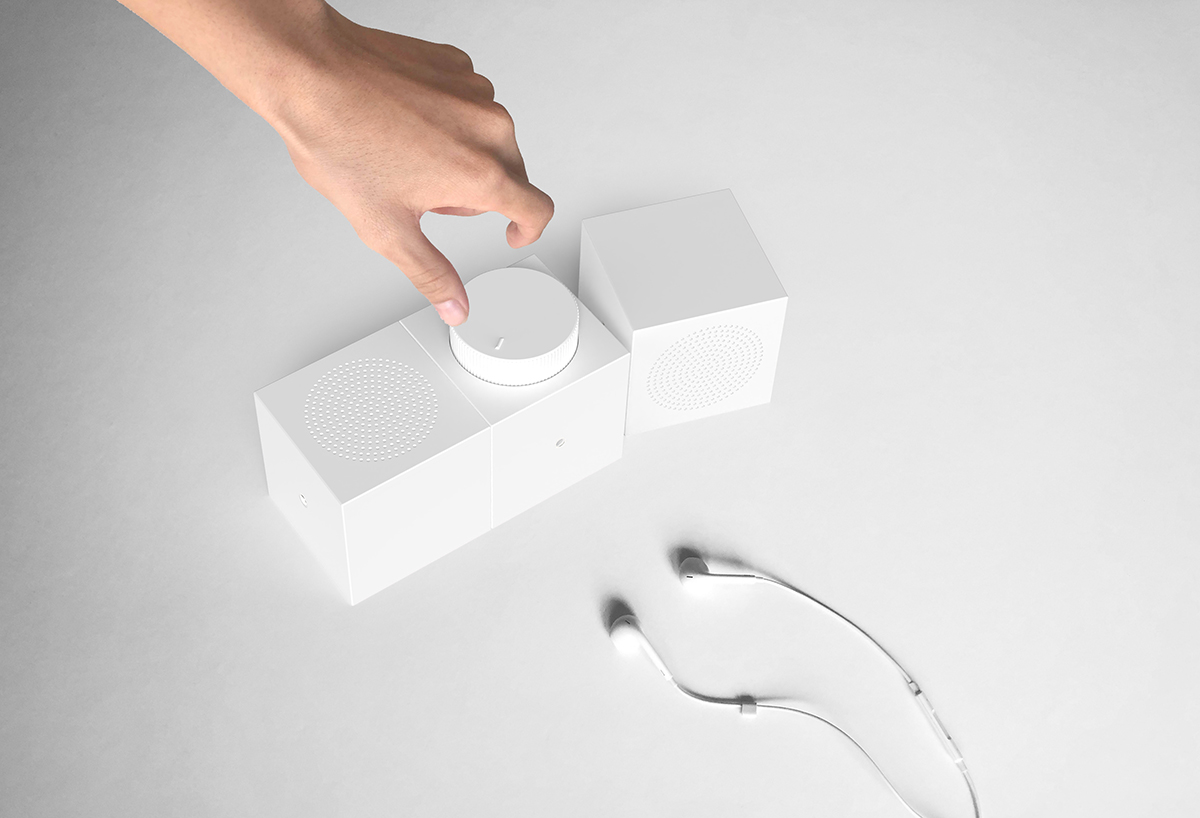 By relating the volume level to the rotating friction, this volume knob gently tells users to keep the volume down. It comes with a set of speakers with the same cubic, minimal design, completing a thoughtful audio device.
