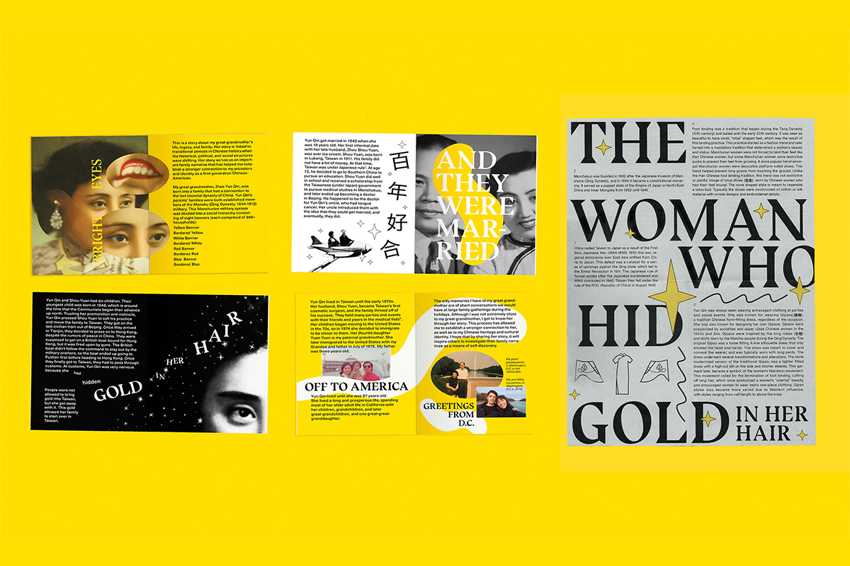 The Lines That Led Us Here is a thesis project that explores identity through family history, ancestry, storytelling, and design. As a first-generation Chinese-American and biracial individual, my identity stems from the connections and relationships I have with my family and culture.