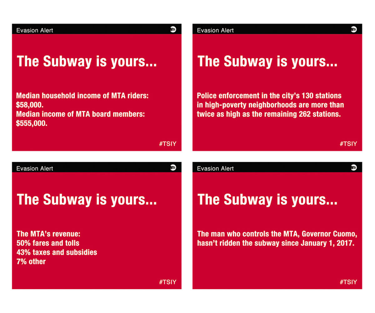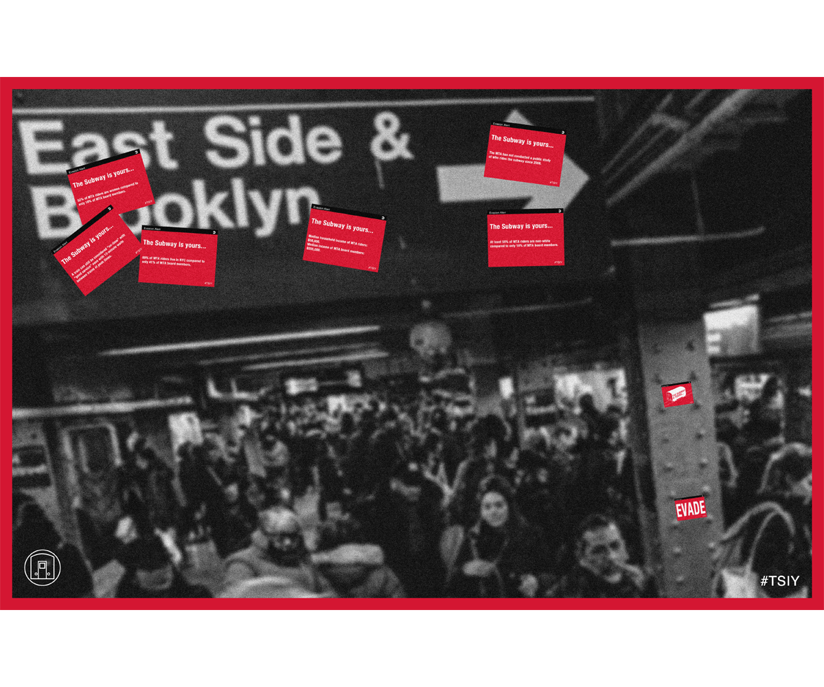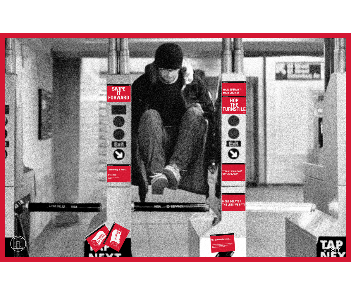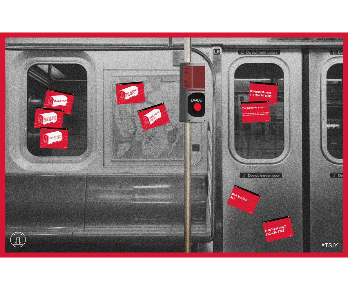 The Subway Is Yours is an ongoing project protesting the Metropolitan Transportation Authority (MTA) and the various ways in which they mistreat the people who rely on them. TSIY promotes fare evasion by creating a visual and physical presence of opposition to the MTA within the NYC Subway. The dispenser and stickers serve as a kind of helpline that spreads accessible knowledge and tools to Subway riders that can be used against the MTA. The posters serve as a way to distribute the message of this project online.