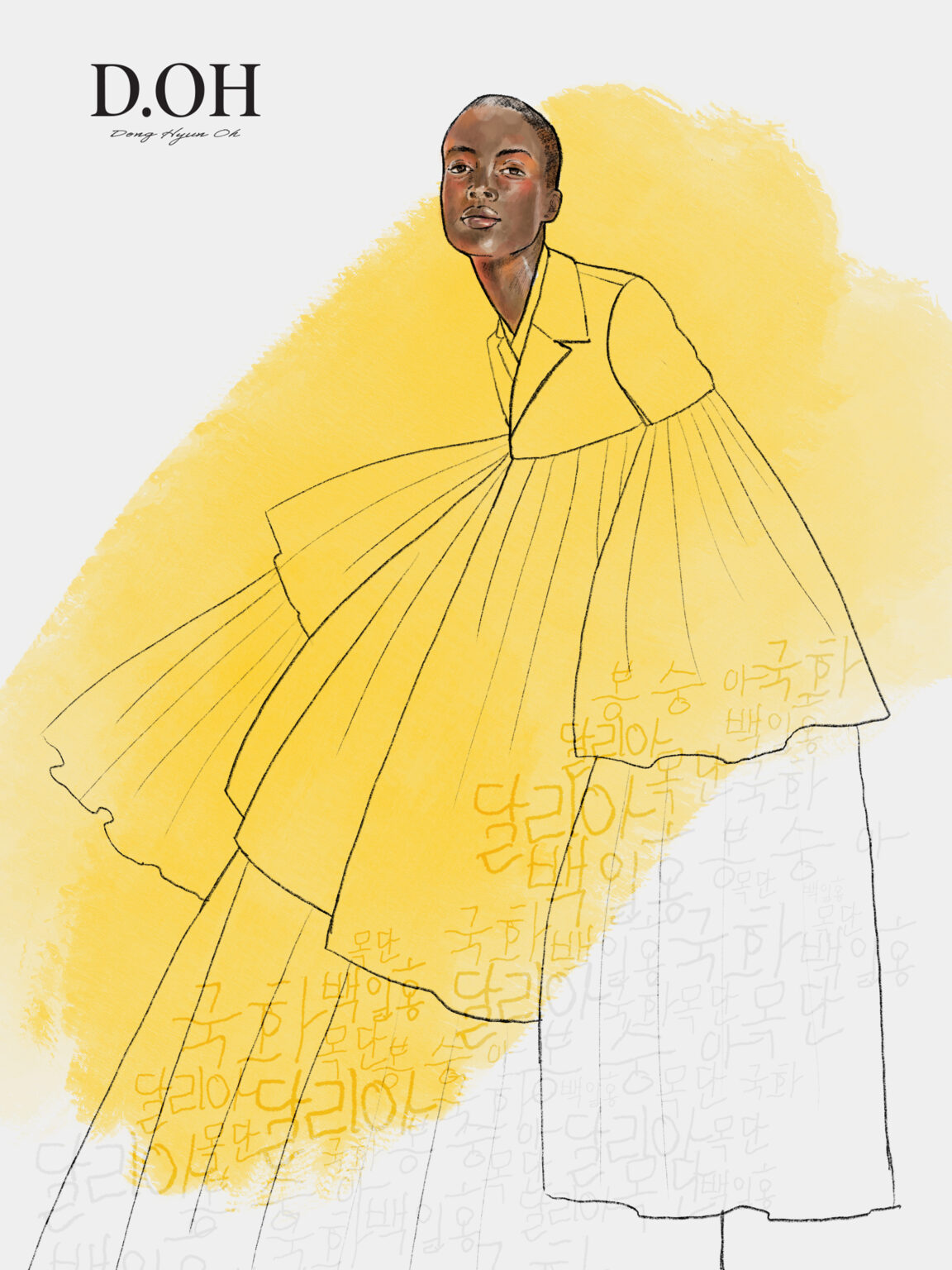 Dong Hyun Oh is a Korean, New York-based fashion designer who focuses on both creativity and craftsmanship. His inspirations include romance, emotion, art, and culture. He often incorporates story-telling in his creating process, with a view to making designs that are both profound and beautiful. With much attention to details and cultural meaning, he hopes that his garments could empower his wearers.