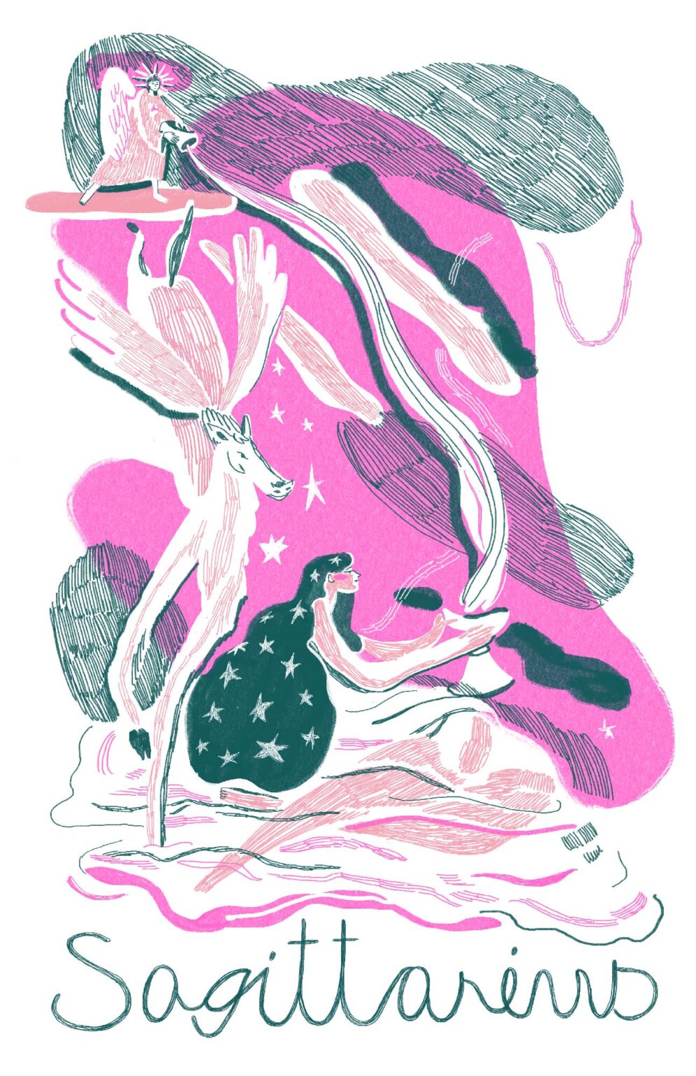 Ellie is passionate about merging digital characteristics with analog art, different methods of print-making (especially Risograph and Silkscreen), Bitmap art, and exploring the art of the book from mainstream publication and children's stories to varied esoteric formats. Her Illustrations display copious movement, distortion, and unique layering and texture that bring themes driven by non-fiction narratives, ornament, spiritual symbolism, and fantasy to life.